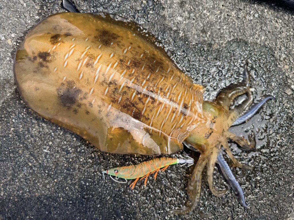 難なく寄せて来たのは880gの♂ ふぅ〜〜〜〜〜〜〜〜〜今週あんだけ期待していて既にボウズかと覚悟をしていましたが、小さいながらなんとかアオリをキャッチ!!その後も追加を期待し時間いっぱいまでシャクってみましたが、アタリは無く終了となりました。
