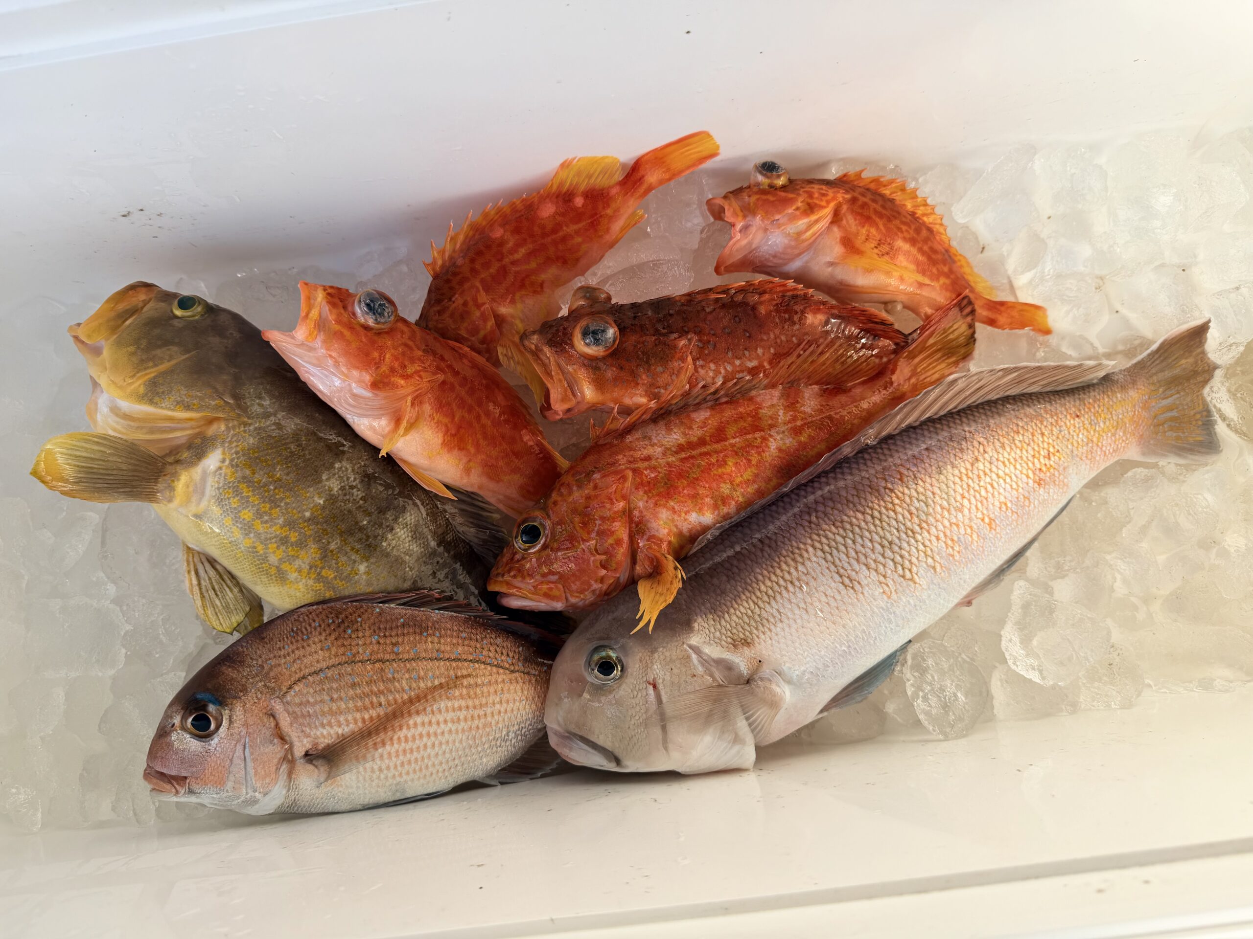 流石に潮が飛びすぎなんで少し浅いポイントへ移動して流し直し、幾分か潮も緩くなって巻き巻き開始です。風も潮もあるのでタイラバも飛んで良い感じですがなかなかアタリは出ず、たま〜に当たるのはアヤメカサゴwこの後風が落ちる予報なんで朝釣らないとヤバイ!!と集中して巻き続けるも段々と風も落ちて来て、同じく潮も緩んでバーチカル地獄に突入(泣)